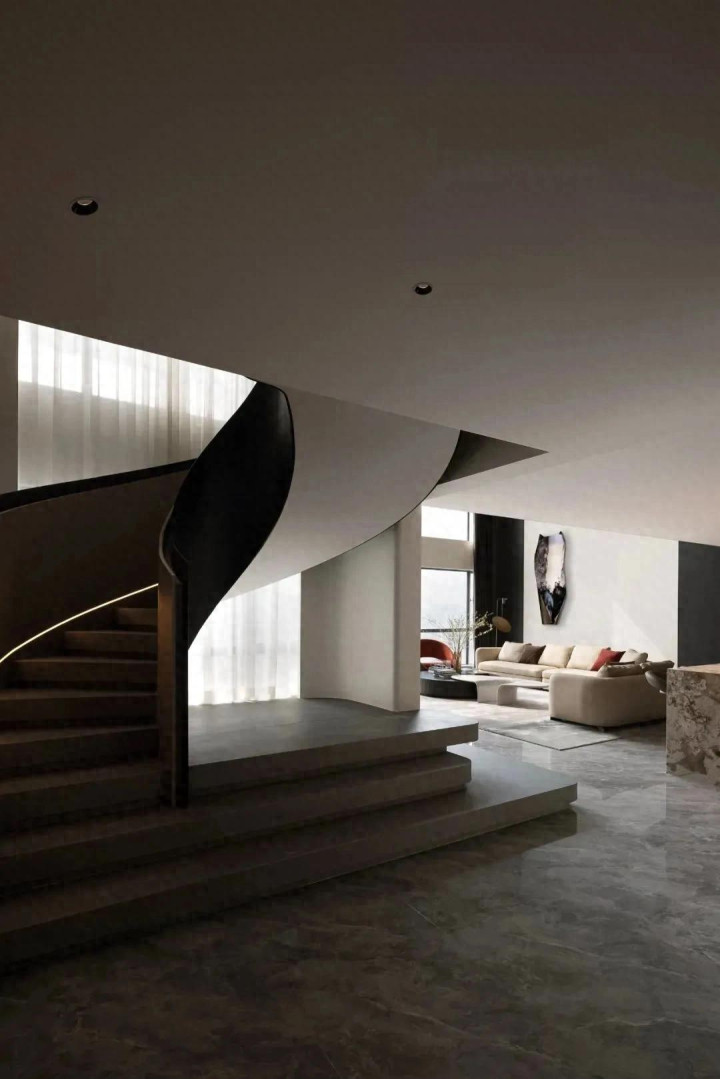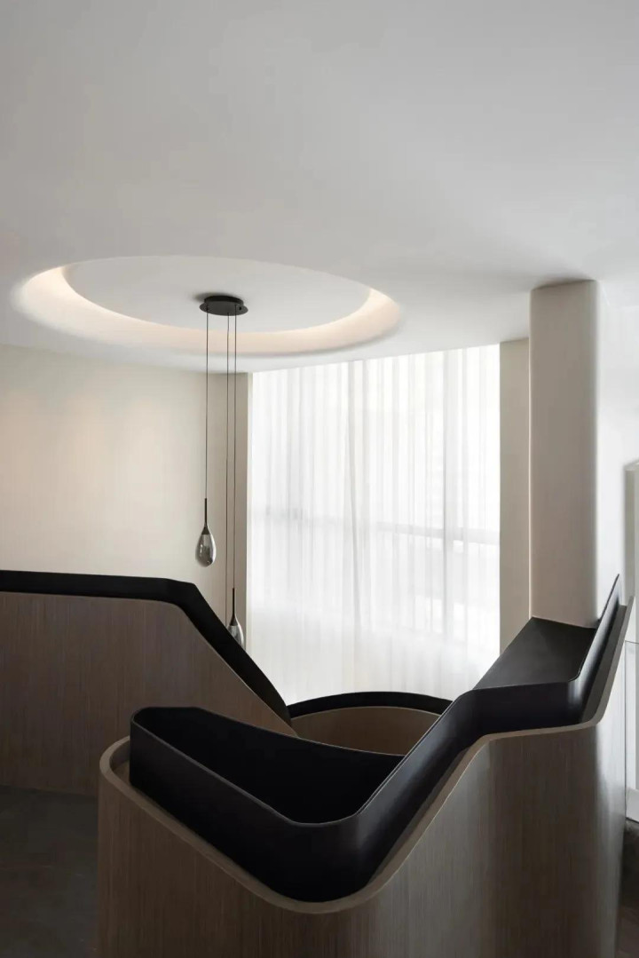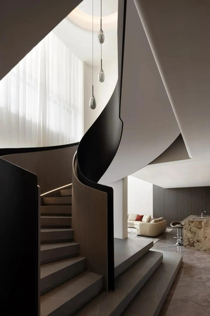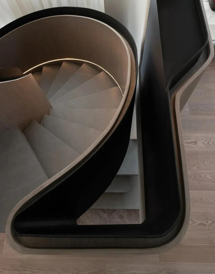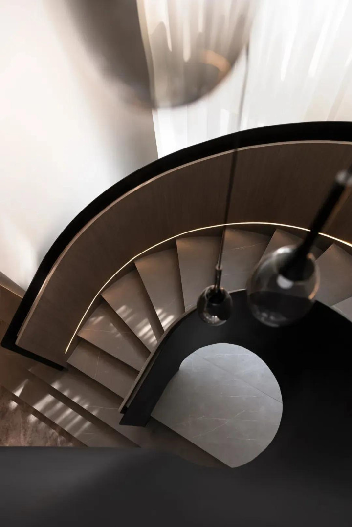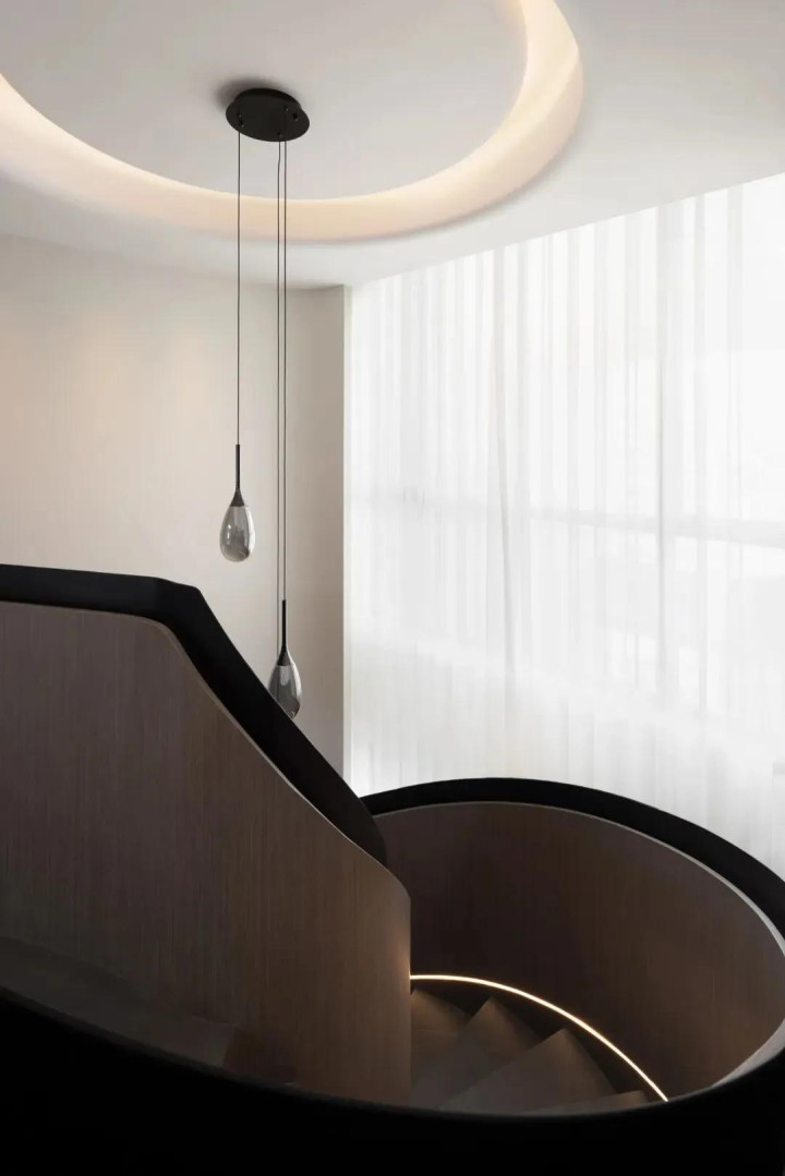 在某些过渡地带,风格化的装饰被抛在一边,转而全心投入对线面体的精雕细琢。几何的凌厉与极简的温婉相互交融、展现、绽放,悄悄消解了风格的桎梏,将家重新 “揽入” 一个只属于家之灵魂的范畴,沉稳且洋溢着自在的氛围。