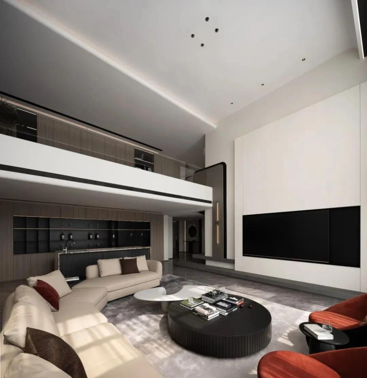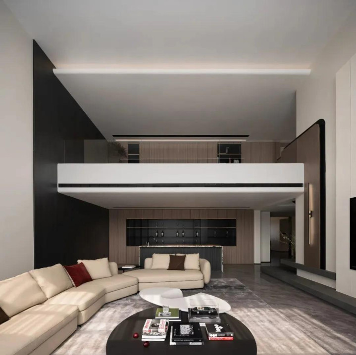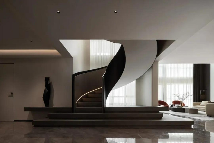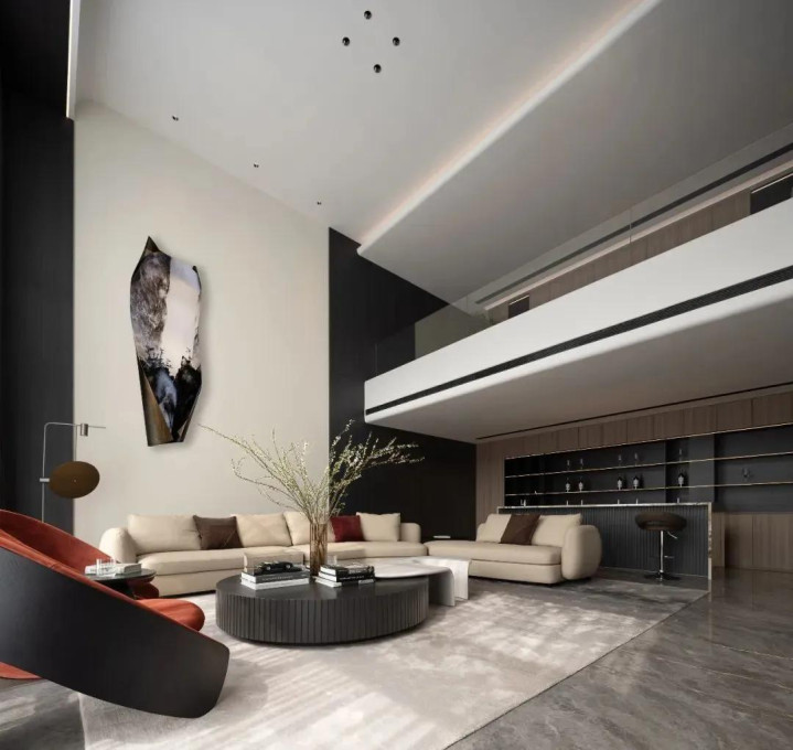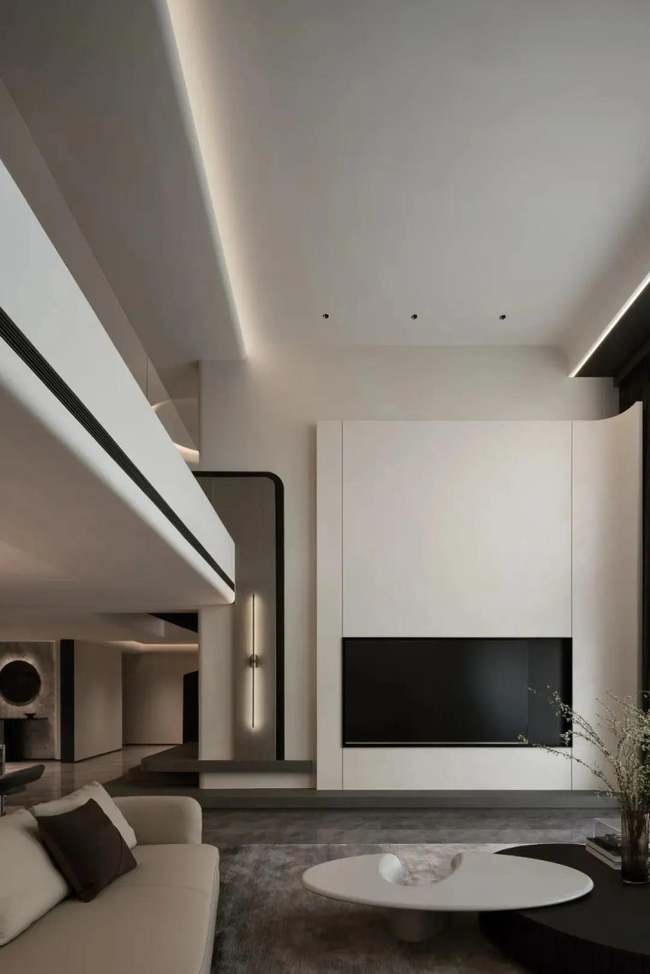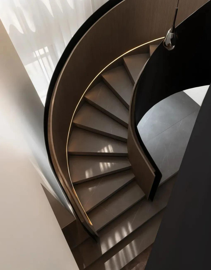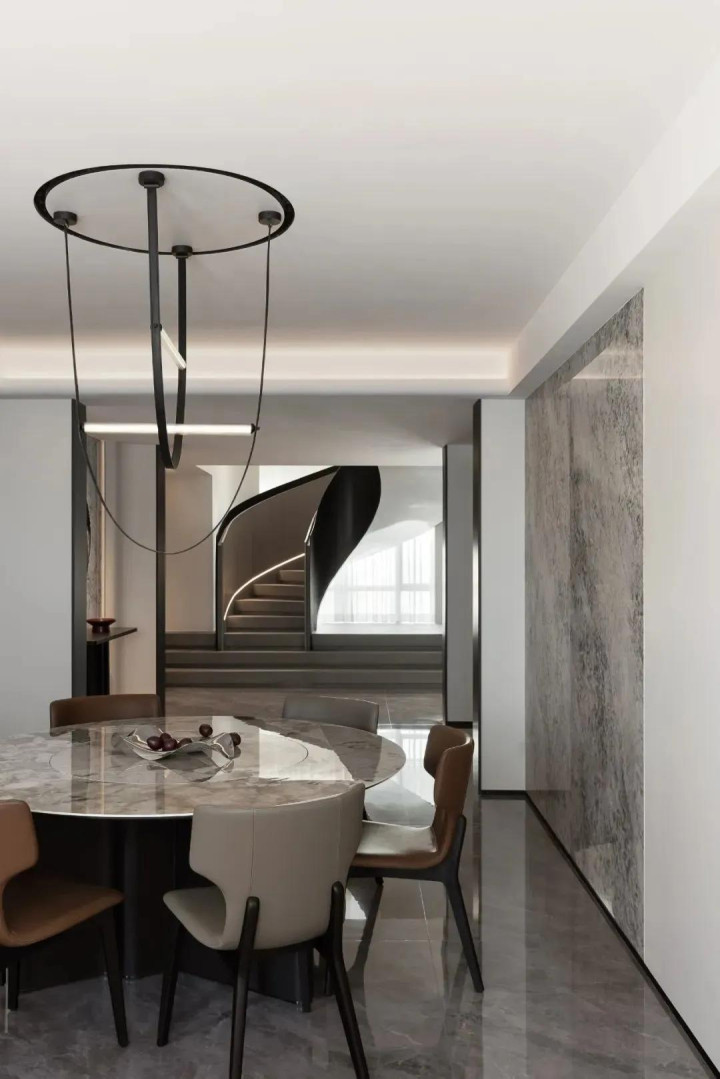 在某些过渡地带,风格化的装饰被抛在一边,转而全心投入对线面体的精雕细琢。几何的凌厉与极简的温婉相互交融、展现、绽放,悄悄消解了风格的桎梏,将家重新 “揽入” 一个只属于家之灵魂的范畴,沉稳且洋溢着自在的氛围。