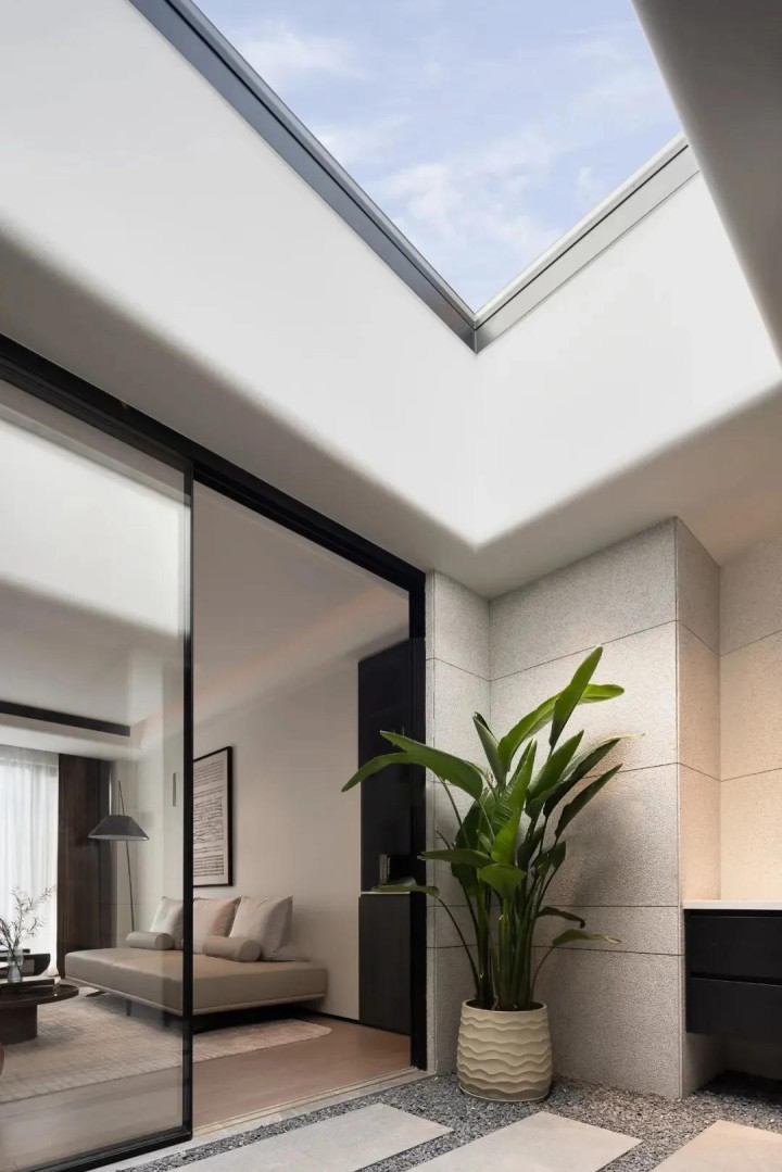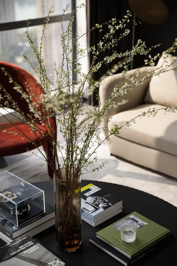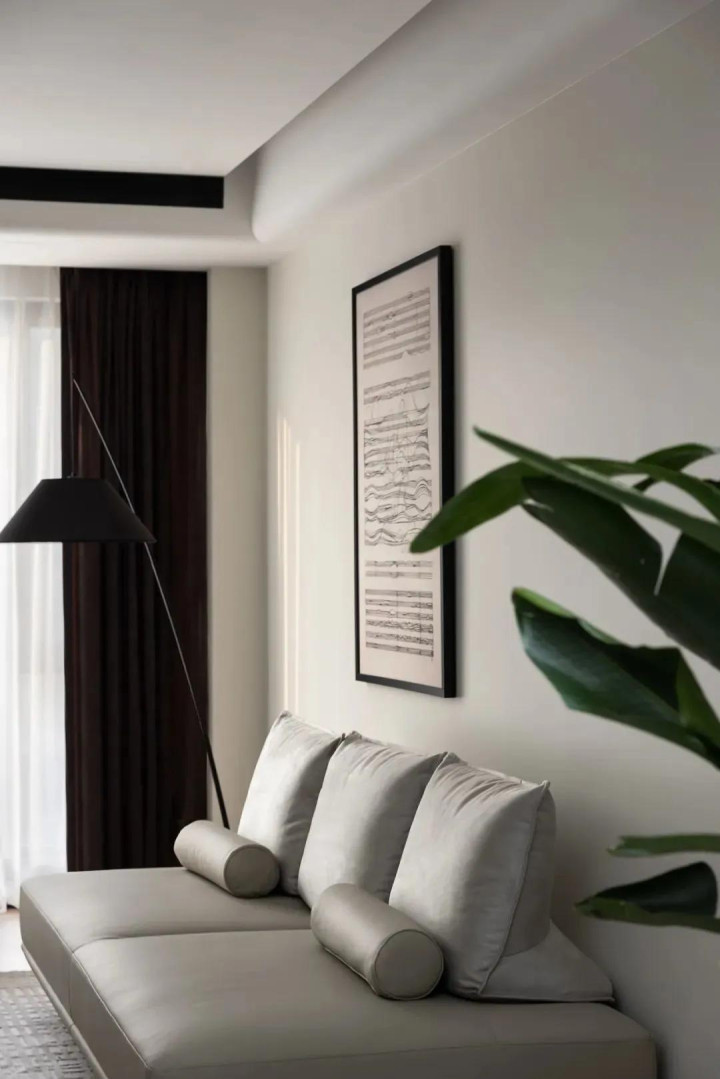 外有园林环抱,被草木浸润的家纯净而简约。所以设计不必留下 “雕琢” 的印记,润物细无声的美学营造更显精妙。空间以淡雅为底色,葱茏绿意悄然渗入,酝酿出带着呼吸与生机的独特质感。